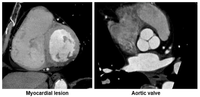 The minimum intensity algorithm is particularly useful in highlighting hypo or low dense regions within the heart.