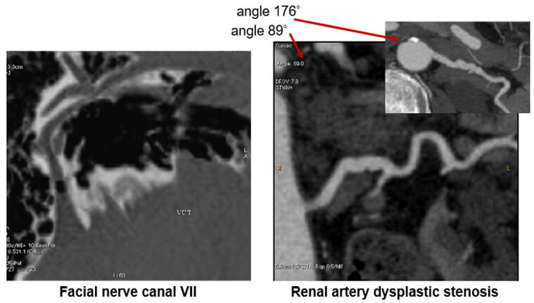 The image on the left shows us the facial nerve while the image on the right shows renal artery dysplastic stenosis.