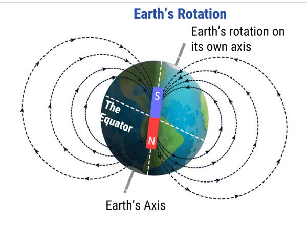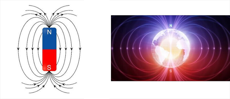 A magnetic field is defined as a region around a magnetic material or a moving electric charge within which the force of magnetism acts. Magnetism is an attraction and repulsion of forces between objects. This magnetism is observed around the earth. The earth is a larger scale example of a spinning object, which is also a dipole (north and south pole). The magnetic field of the earth allows us to use a compass to determine direction. We can also observe a magnetic field around permanent magnets and coils fed by electrical charge.