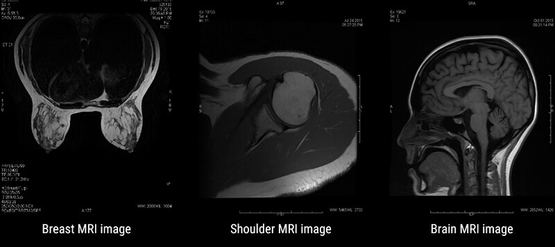 MRI has many applications in medical imaging. It is best known for its superb spatial resolution or the ability to resolve fine detail and small objects. Some of the most common applications are: Musculoskeletal or MSK, Neurological studies, functional studies, liver imaging, breast imaging and even cardiac imaging.