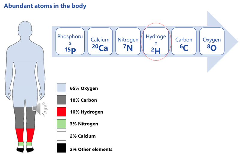 Next, we need an abundance of atoms with an odd number of protons. In the human body, that atom is hydrogen.