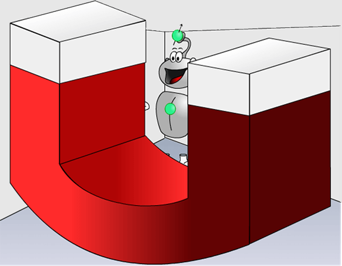 Resistance is practically zero: the hedges are very low and do not impede the progress of our runner. If we allow the system to warm up, for example by venting off some liquid helium, the temperature increases and along with it resistances of the alloy through which the current passes. The current is blocked and with it the magnetic field it was producing.