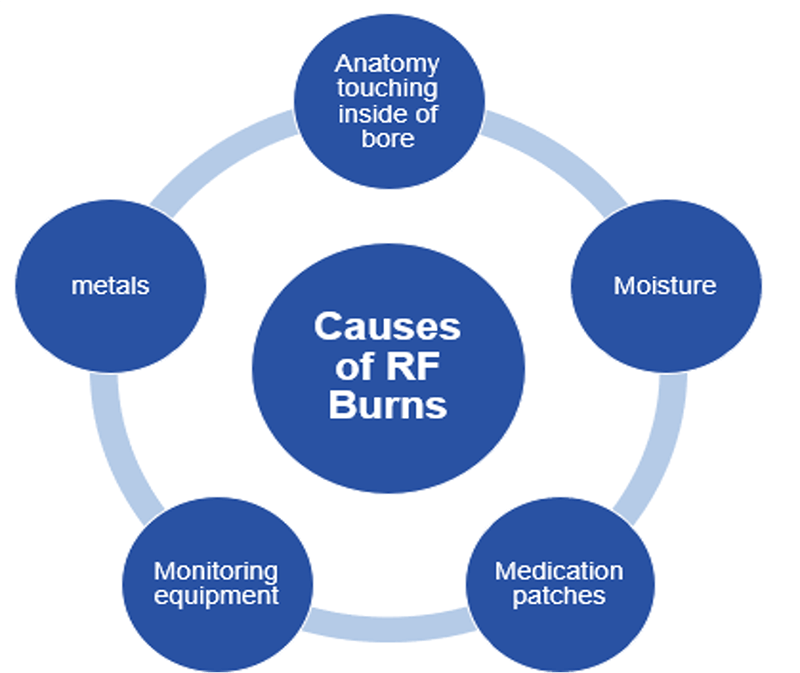 - Energy can be transferred to the patient during the MRI in the form of burns