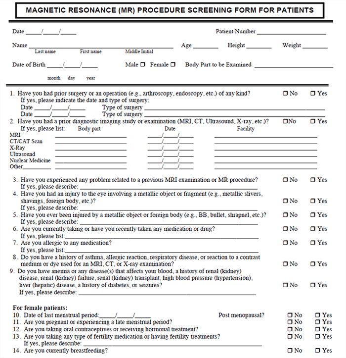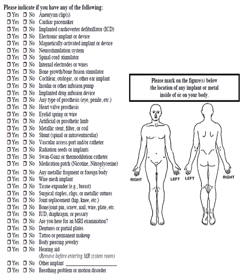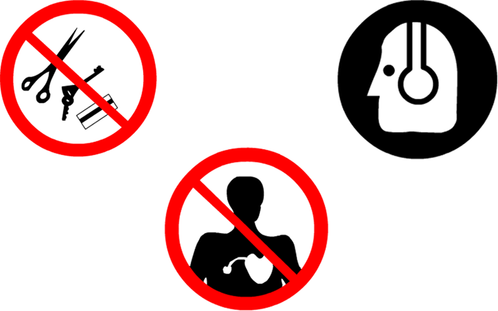 - Absolute contraindication such as a pacemaker, Stimulators, aneurysm clips, and metal fragments in the eye