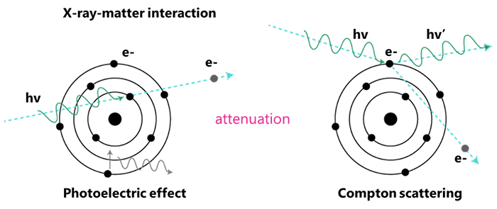 When they pass through matter, x-rays produce electrically charged particles. Because of these ions, the process is termed ionizing radiation. The production of these ions as well as the electrons ejected in the process may cause injury to biological tissue. There are various consequences to this process.