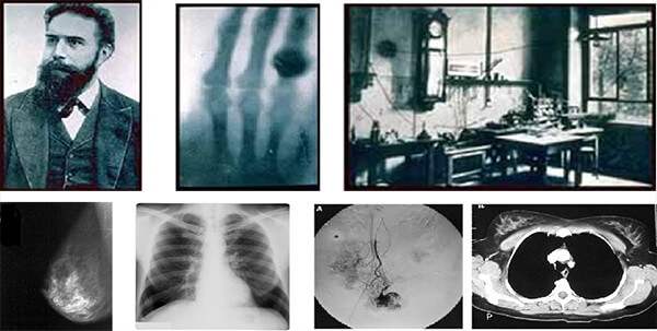 X-rays were discovered in 1895 by Wilhelm Conrad Roentgen (1845-1923) who was a Professor at Wurzburg University in Germany. Working with a cathode-ray tube in his laboratory, Roentgen observed a fluorescent glow of crystals on a table near his tube.