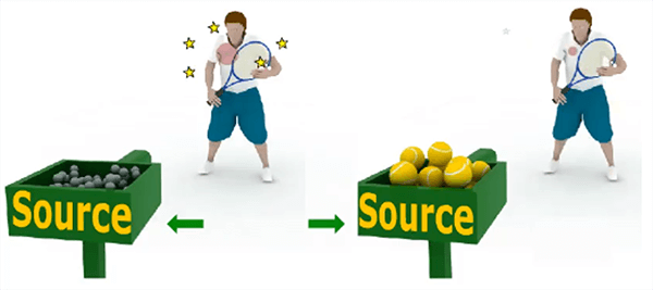 As shown in phase 2, only 1 of the 3 falling apples hits the girl’s shoulder. This apple represents the radiation that is transferred to the irradiated tissue represented by the girl’s shoulder. This explains the concept of the Absorbed Dose.