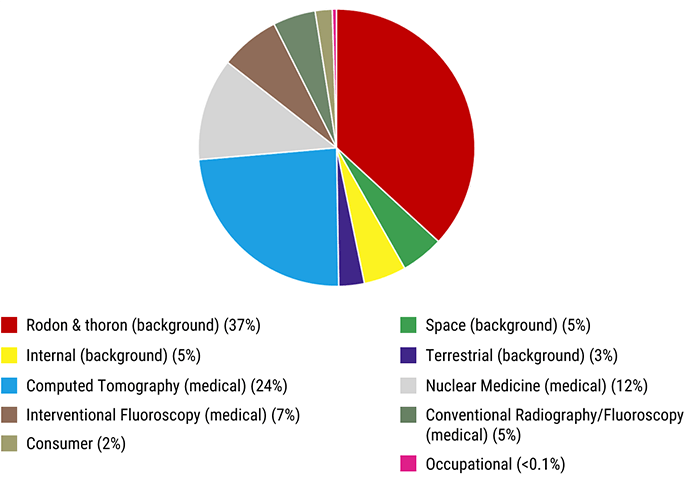 As we mentioned in the previously, there are many sources of ionizing radiation with radon being the highest background radiation source and computed tomography being the highest medical source to persons.
