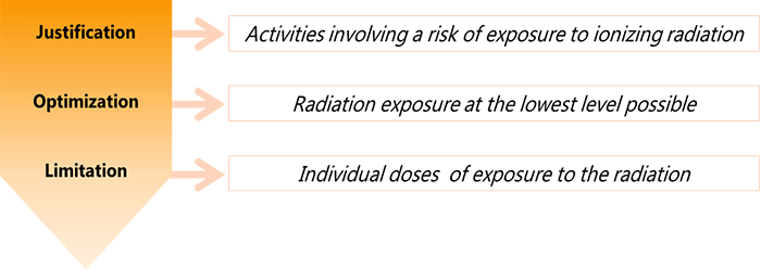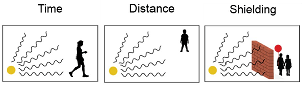 • Always respect the 3 principles of distance, time and shielding