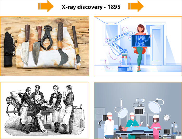 Radiography is an important tool in nondestructive evaluation. The method offers a number of advantages over other NDE methods, but one of its disadvantages is the health risk associated with the radiation. Health effects can occur due to either long-term low level exposure or short-term high level exposure. There is a long story behind the development of radiodiagnosis from X-rays to the Current CT scans.