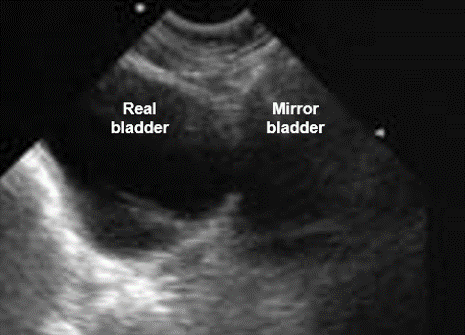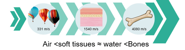 The bones have a high degree of reflection because their acoustic impedance is extremely high (7.8) compared to other tissues of the body. The air has a high degree of reflection because its acoustic impedance is extremely low (0.0004) compared to other tissues of the body. For this reason, it is important to apply a good quantity of conductive gel (a medium of acoustic coupling) on the transducer surface to eliminate any air pockets between the transducer and the skin surface.