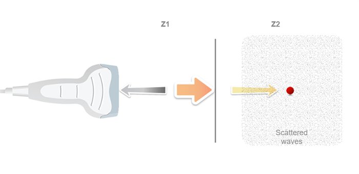 The acoustic impedance is a physical property of biological tissues. It describes the resistance that an ultrasound wave encounters as it passes through a tissue. It is important to know that the discontinuities in the acoustic impedance are responsible for the echoes on which the ultrasound imaging is based. The higher the difference in impedance, the greater the amount of reflection. The acoustic impedance depends on the density of the tissue(ρ in kg/m3) and the speed of the sound wave-wave (V in m/s); if the density of tissue increases, impedance increases. Similarly, if the speed of sound increases, then impedance also increases. Z = ρV