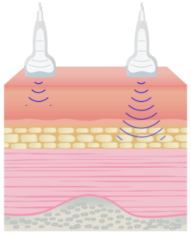 It is known that the crystals in the ultrasonic probe change shape, and emit ultrasonic waves when stimulated by an electrical current. These sound waves reflect off the surface of the body and collide with quartz crystals, which then produce an electrical current.