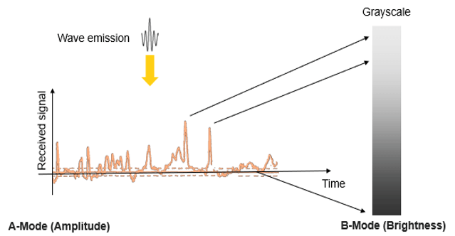 The echoes are generated by reflection or scattering and propagate backward towards the probe, which operates in receiver mode immediately after the pulse is transmitted. Whenever an echo reaches the surface of the probe, an electrical signal is produced, having an amplitude proportional to that of the echo.
