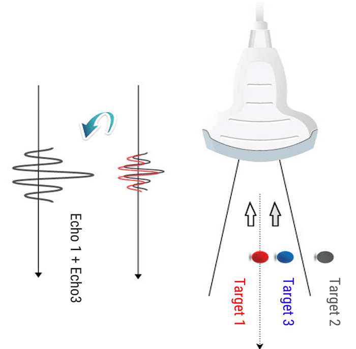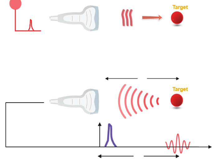 If we consider that an ultrasound wave propagates in the soft tissues at a constant mean speed c, the time t (echo flight time) that elapses between the emission and the reception of an echo, corresponds to the duration of a round trip to the target which is expressed simply by the fundamental relationship of ultrasound: ct = 2z, where c is the ultrasound speed, t is the time of propagation, and z is the penetration distance.