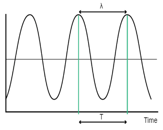 The wavelength is the distance traveled by the sound during a single cycle, or between two identical points in the cycle of the wave. It is the distance between two points of compression peak that follow one another. Please note that the frequency and the wavelength are inversely proportional, when the frequency increases, the wavelength decreases, and vice versa.