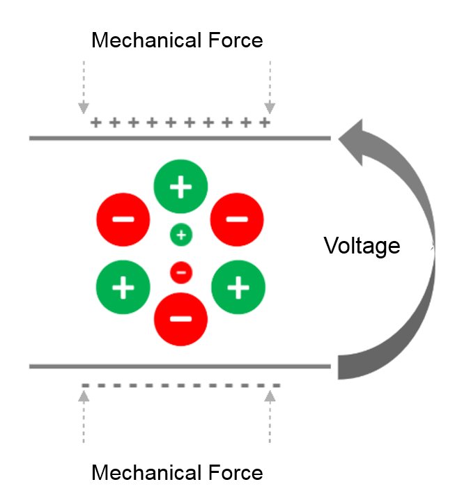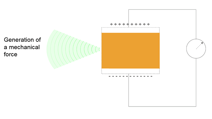 The direct effect is the generation of an electrical signal following the application of a mechanical force. The piezoelectric effect converts the mechanical energy (received ultrasound wave), into electrical energy, due to the crystal deformation. This is how ultrasound transducers receive the sound waves.