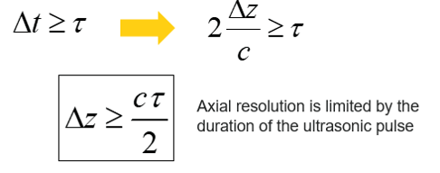 Besides, the spatial resolution determines the degree of image clarity. It is divided into axial resolution, which is the capacity along the axis of the ultrasonic beam, and lateral resolution, which is perpendicular to the axis of the beam. The limit of the theoretical (spatial) resolution system is given by the wavelength of the ultrasound wave. The velocity of propagation in the soft tissues is about 1540 m/s.