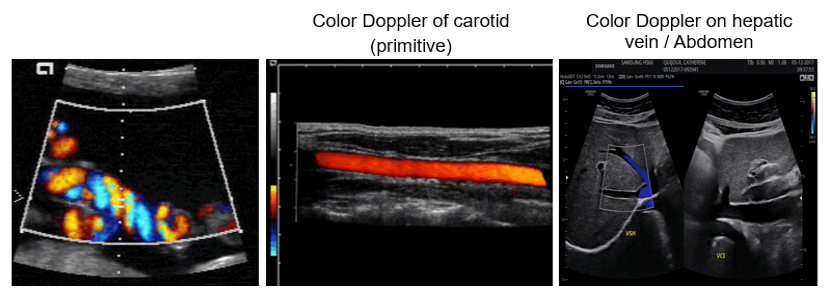 Color Doppler is mostly used in fetal and hepatic ultrasound, where the primitive carotid and the hepatic vein are well visible.