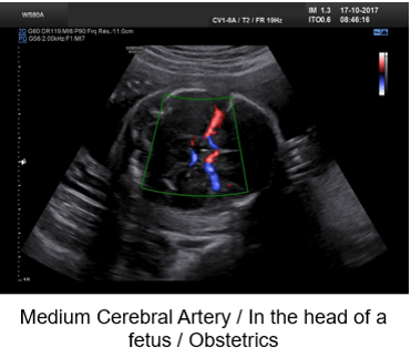 For example, pulsed Doppler is used in obstetrics to measure the flow of the umbilical and fetal arteries.